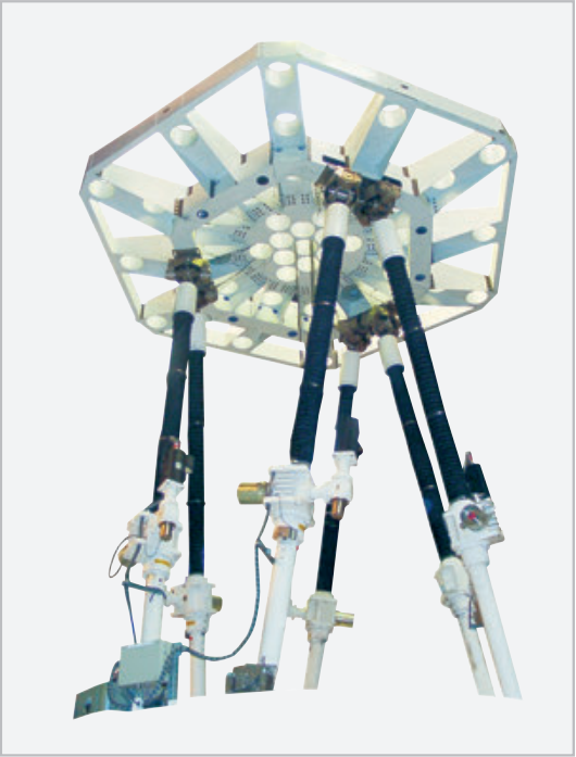 應用圖例: VERTEX 天線技術有限公司射電天文接收器并聯運動驅動系統(tǒng), 由6根HSE高性能蝸桿絲杠升降機組成,升降高度3500mm。該系統(tǒng)用于同一平臺上 數個射電望遠鏡的定位。